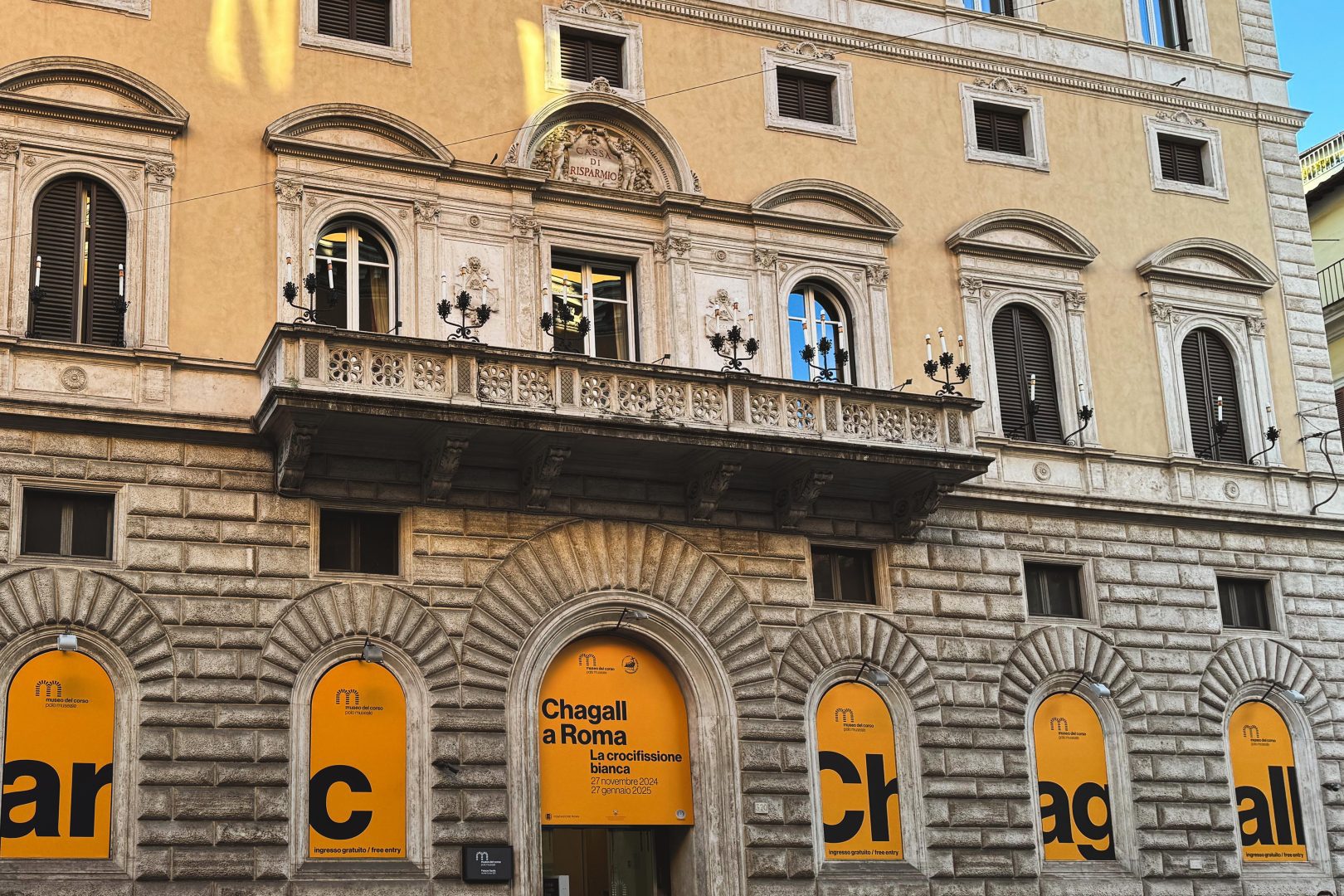 L’arrivo a Roma della Crocifissione Bianca di Marc Chagall coincide con un momento storico altamente simbolico: è infatti la prima volta che questa celebre opera, molto cara a Papa Francesco, viene esposta nella Capitale. L’inaugurazione della mostra è avvenuta pochi giorni prima dell’apertura della Porta Santa a San Pietro e dell’inizio dell’Anno Giubilare. Inoltre, è stata scelta per celebrare l’inaugurazione ufficiale del Museo del Corso – Polo Museale, un nuovo spazio culturale promosso dalla Fondazione Roma.