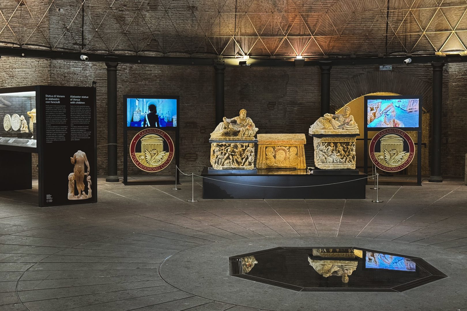 Collocato all’interno dell’Aula Ottagona delle Terme di Diocleziano – un tempo Planetario di Roma – il museo dialoga con un’architettura che già di per sé è testimonianza di stratificazioni storiche. La sala, caratterizzata da una pianta quadrata esterna e ottagonale interna, fu probabilmente utilizzata come frigidarium secondario in età imperiale. Nel Novecento ospitò il Planetario cittadino, rimosso nel 1987. Oggi questa stessa struttura diventa luogo di riflessione sul valore della tutela.