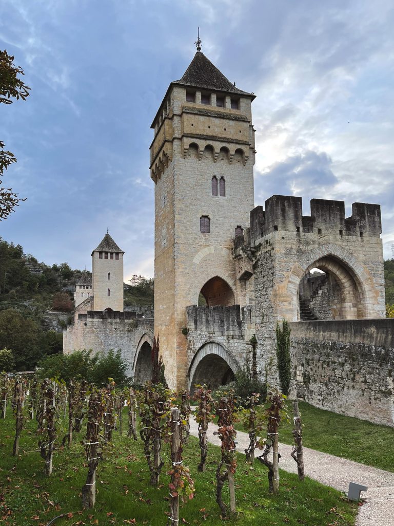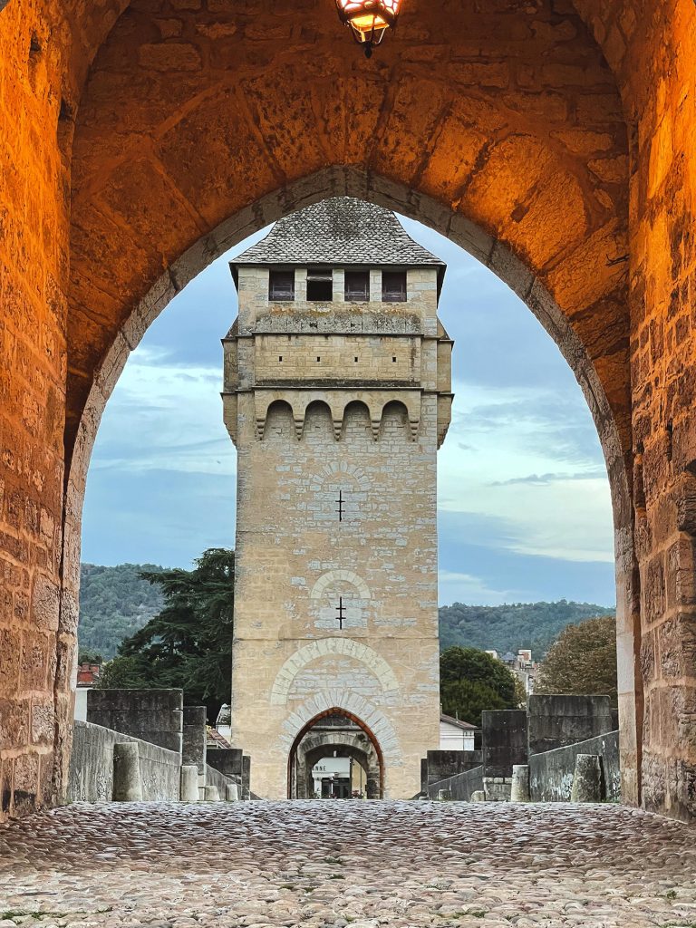 Proseguiamo ora in direzione del fiume Lot, per ammirare la bellezza del Pont Valentré – uno dei ponti medievali più noti della Francia e Patrimonio dell’Umanità UNESCO, parte del percorso di San Giacomo di Compostela. Le sue sette arcate gotiche e le tre torri merlate si specchiano dolcemente sulla superficie placida dell’acqua.