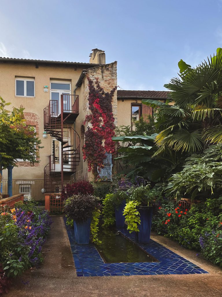Poi c’è il già citato Cortile Celeste – il chiostro della Cattedrale di Saint-Étienne – un piccolo paradiso in cui il bianco dei gigli e il blu della lavanda si mescolano in un tributo alla Vergine Maria. Il Cortile dei Caorsins (Rue Fouilhac) è un giardino di ispirazione italiana, che rimanda ai banchieri lombardi del Medioevo. Formati da quest’ultimi, i Caorsin erano ricchi mercanti usurai del Quercy, attivi tra il XII e il XIV secolo, la cui attività ebbe un’influenza internazionale. Intorno alla vecchia fontana crescono glicini e cipressi, completati da una parete verde composta da pervinche, edera, trachelium e gerani.