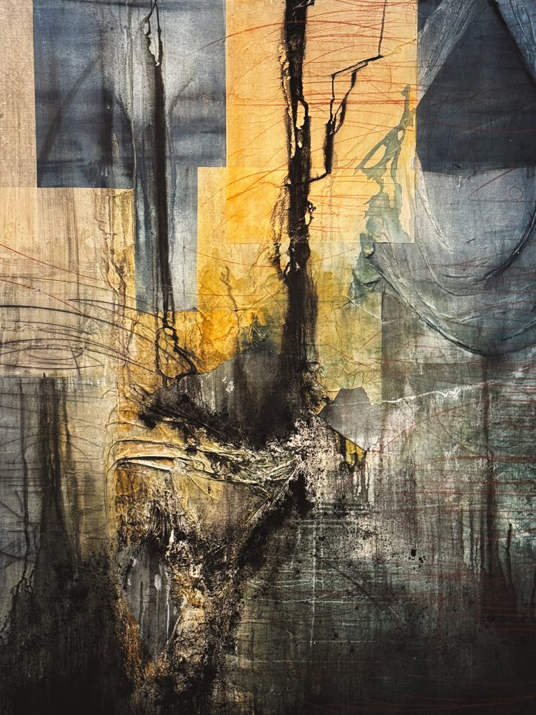 Al centro della ricerca di Minh Lan Tran si colloca la pittura, intesa come uno spazio operativo in cui materia e significato vengono continuamente stratificati, cancellati e riorganizzati in un equilibrio instabile. Le opere prendono forma attraverso un complesso deposito di materiali – lattice naturale, pigmento, carta, gesto, inchiostro e carboncino – che non vengono semplicemente applicati, ma sottoposti a processi di incisione, abrasione e oscuramento. La superficie diventa così il teatro di una negoziazione incessante tra costruzione e sottrazione, dove l’atto pittorico si accompagna alla sua stessa messa in discussione.