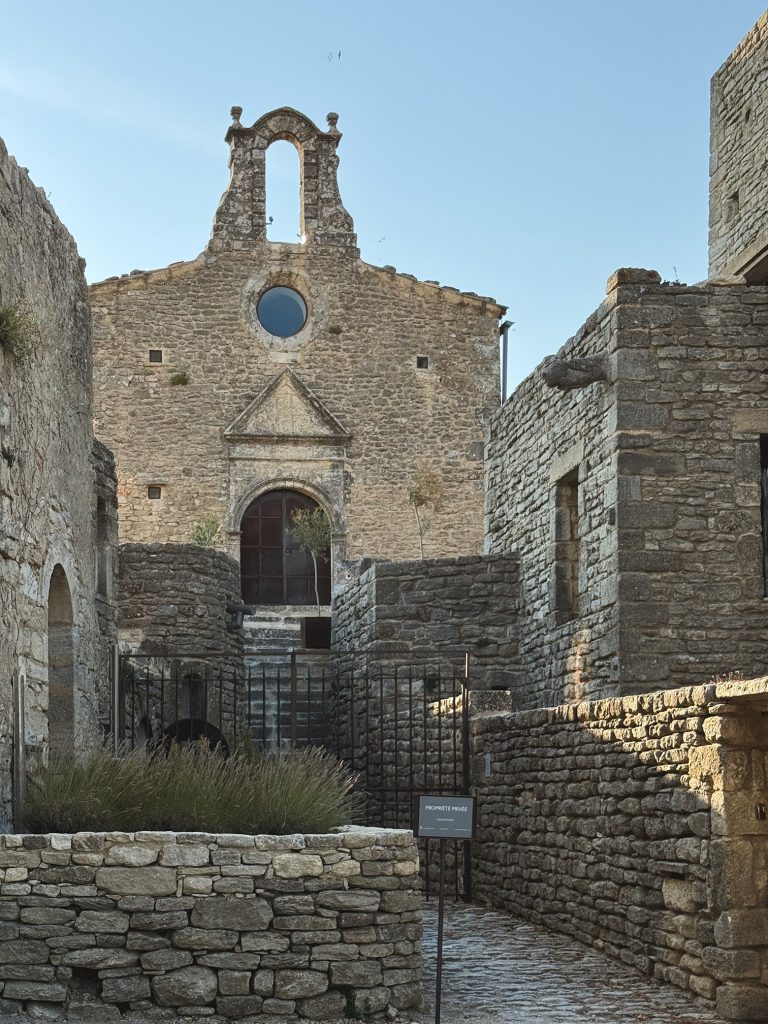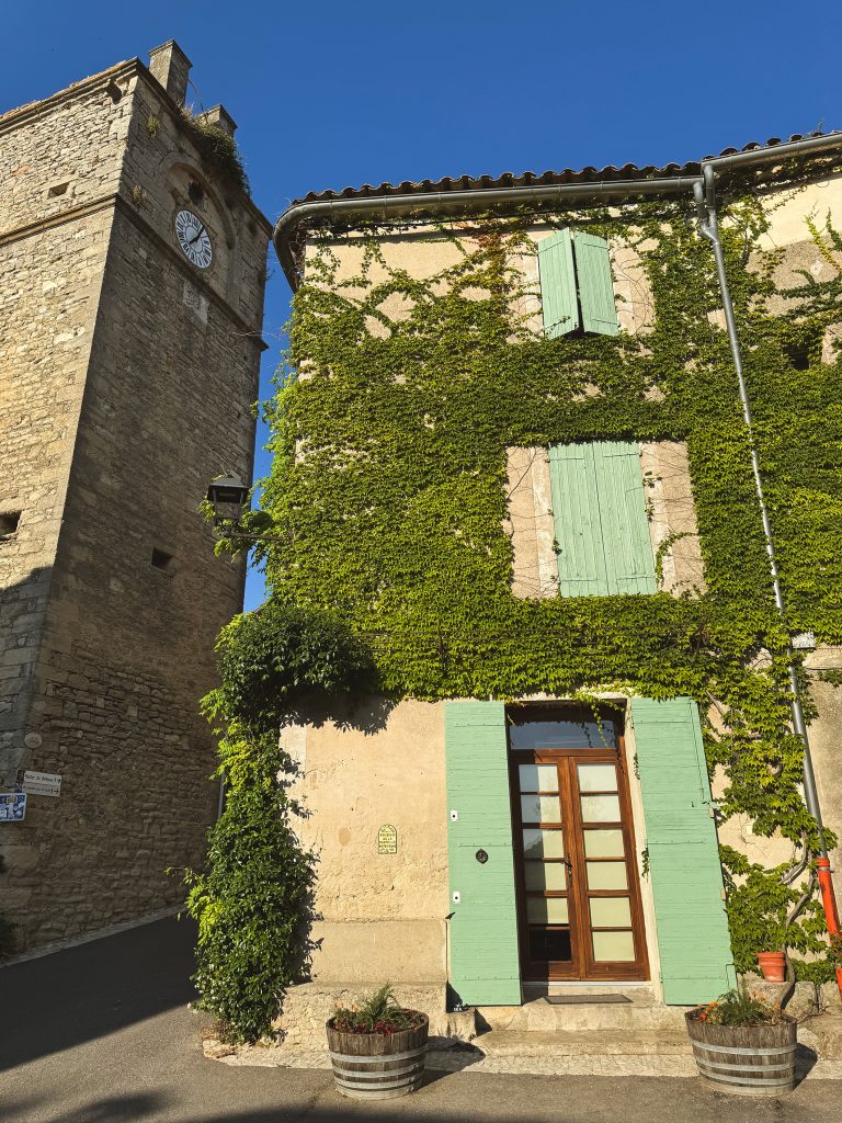 Poco più avanti si apre la Place de la Mairie e, davanti alla chiesa, si affaccia un piccolo edificio semplice con le persiane dipinte d’azzurro: è il municipio di Saignon. Questo contrasto tra la grandiosità romanica e la quotidianità di una casetta provenzale riassume bene l’anima del borgo.