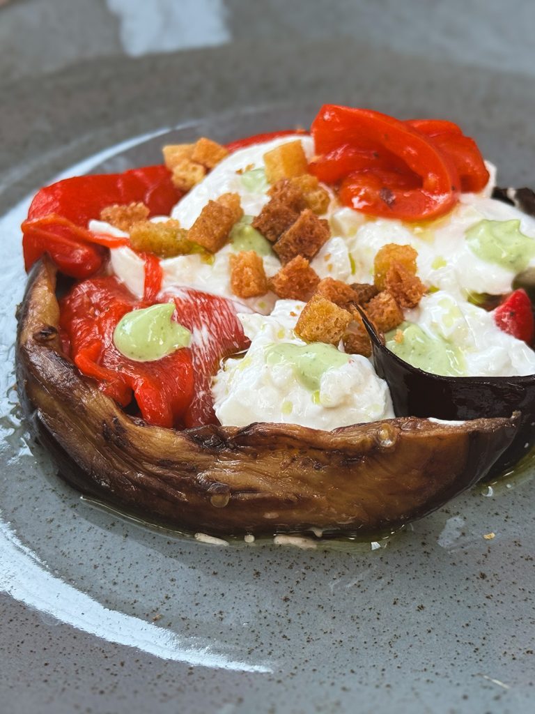 Verdure locali grigliate, burrata pugliese e olio al basilico di “Un jardin sur le toit” | © Serena Annese