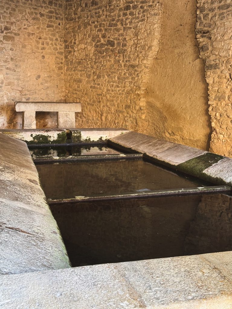 Accanto, un portico copre l’antico lavatoio, dove un tempo le donne lavavano i panni. Nel borgo si conservano ancora due lavatoi intatti, alimentati dalle sorgenti di Valsorgues: oggi non hanno più funzione pratica, ma restano vive testimonianze della vita comunitaria di un tempo.