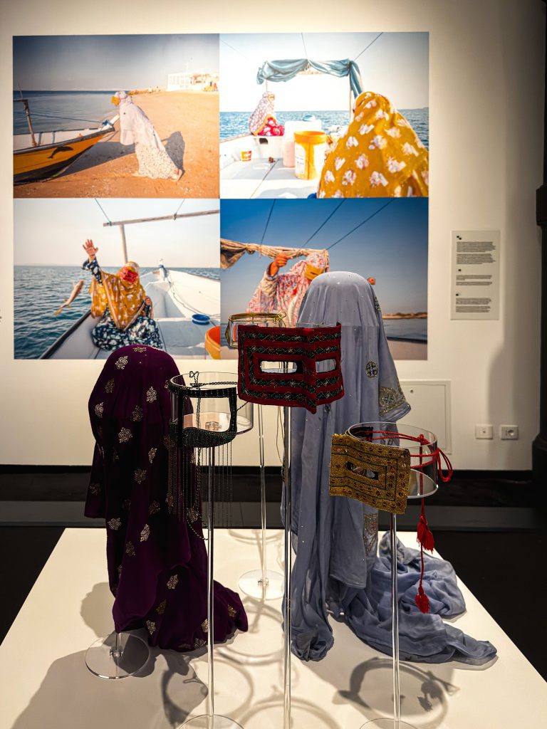 La sezione centrale della mostra è dedicata a Forough Alaei e al progetto Daughters of the Sea, in cui il corpo si riappropria di uno spazio reale e politico. Sull’isola iraniana di Hengam, all’estremità meridionale del Golfo Persico, la pesca è praticata soprattutto dalle donne, conosciute come “le figlie del mare”. Indossano veli e mascherine che le proteggono dal sole e da sguardi indesiderati, tracce di una memoria storica segnata da antiche occupazioni straniere.