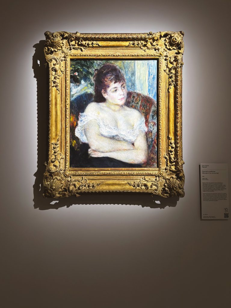 Il percorso espositivo si apre con cinque opere di Edgar Degas, il celebre Bagnanti di Paul Cézanne, e il raffinato Donna in poltrona di Pierre-Auguste Renoir, scelto come immagine guida della mostra. Accanto a loro, Pissarro, Sisley e Max Liebermann, quest’ultimo testimone della diffusione dell’essenza impressionista oltre i confini francesi.