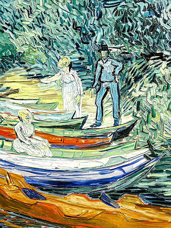 Dopo il 1886, anno dell’ultima mostra impressionista, la pittura europea si avvia verso una riflessione più strutturata. Colori e forme si solidificano, le visioni si fanno costruzione. Nella seconda sezione – Dopo l’Impressionismo – Sainte-Victoire di Cézanne, databile ai primi del Novecento, mostra questa transizione in tutta la sua energia geometrica: il mondo si decompone per ritrovare un ordine più radicale e più mentale. Nelle tele di Van Gogh, due opere di intensità travolgente, la realtà si scioglie in uno stato d’animo: la pennellata vibra e il visibile diviene rivelazione interiore.
