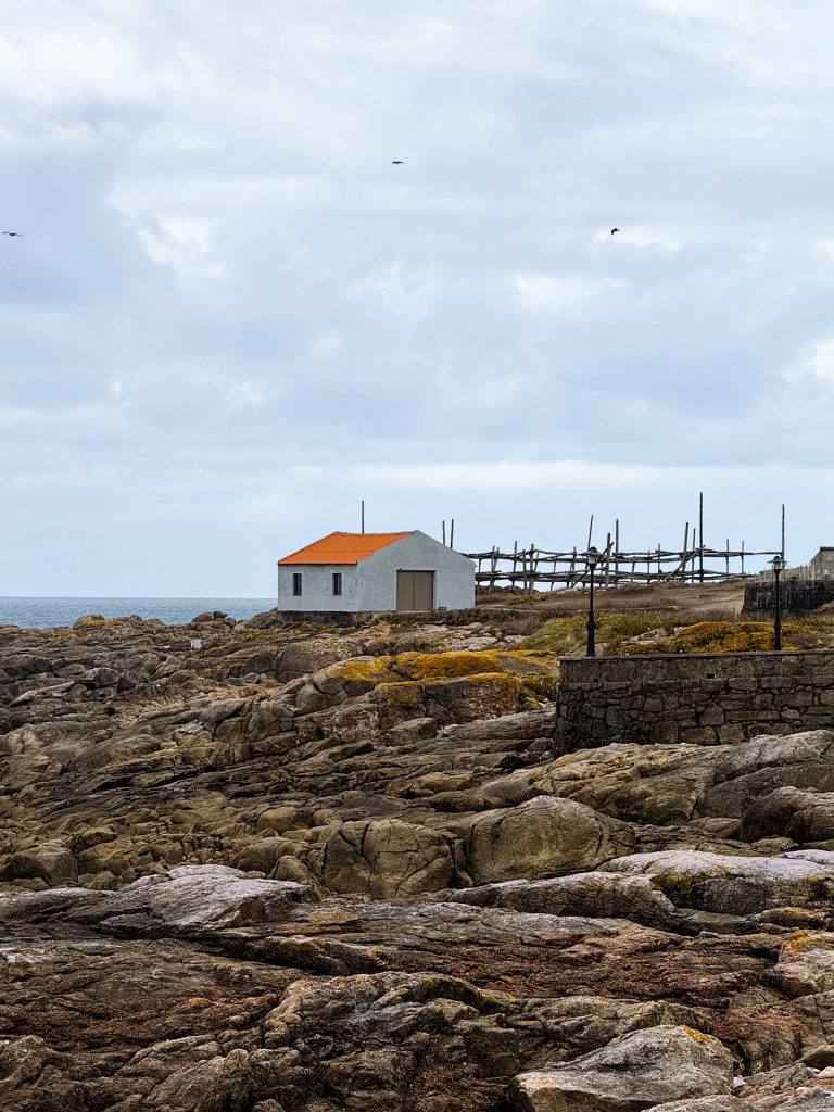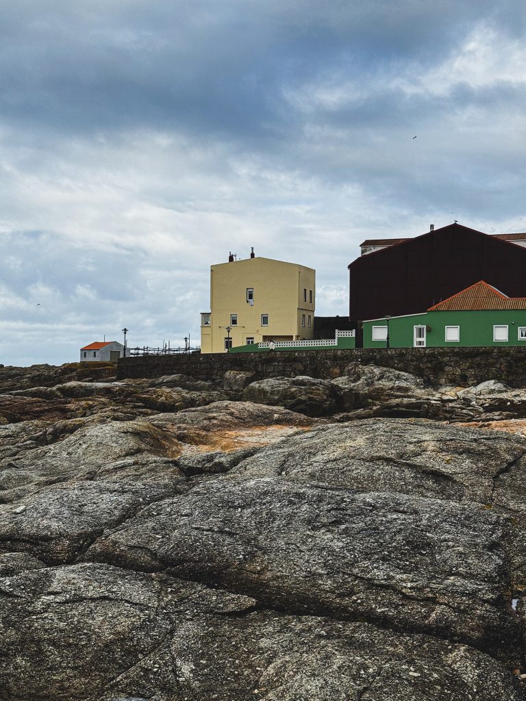 Muxía conserva inoltre una tradizione produttiva ormai rara nel panorama europeo: gli ultimi essiccatoi artigianali di grongo, autentica espressione di una cultura marinara che resiste all’omologazione contemporanea. A questo si affianca un patrimonio diffuso di architettura popolare che punteggia l’entroterra e le aree rurali. La pietra, materiale dominante, diventa qui linguaggio architettonico e testimonianza di un rapporto diretto e funzionale con l’ambiente, plasmato da condizioni geografiche, economiche e sociali.