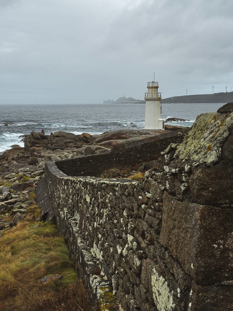 A pochi passi dal Santuario della Vergine della Barca, si trova il faro di Muxía, uno dei riferimenti visivi e simbolici più riconoscibili dell’intera Costa da Morte. Situato a Punta da Barca, questo edificio ottocentesco è un elemento profondamente integrato nel paesaggio culturale e spirituale della regione.