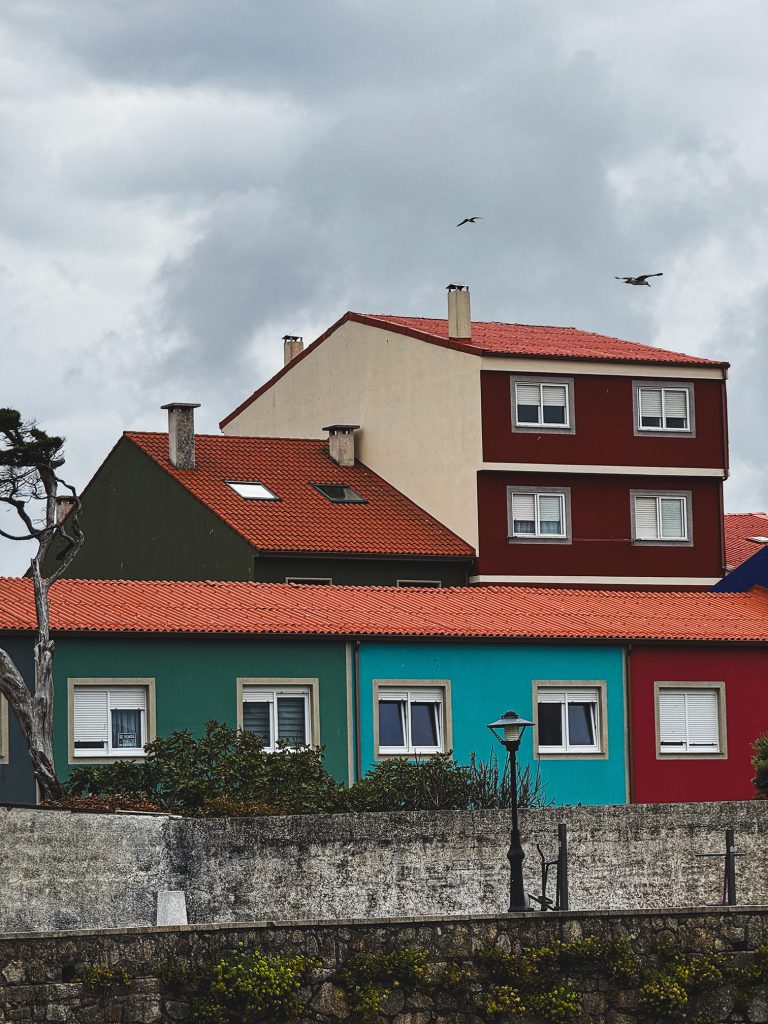 Il centro storico di Muxía si sviluppa attraverso un intreccio di strade acciottolate, case colorate e piccole piazze. Qui si trova la Chiesa di Santa María di Muxía, edificio che racchiude elementi di pregio sia dal punto di vista architettonico sia religioso. Intorno, le abitazioni in pietra con balconi fioriti contribuiscono a creare un’atmosfera pittoresca.