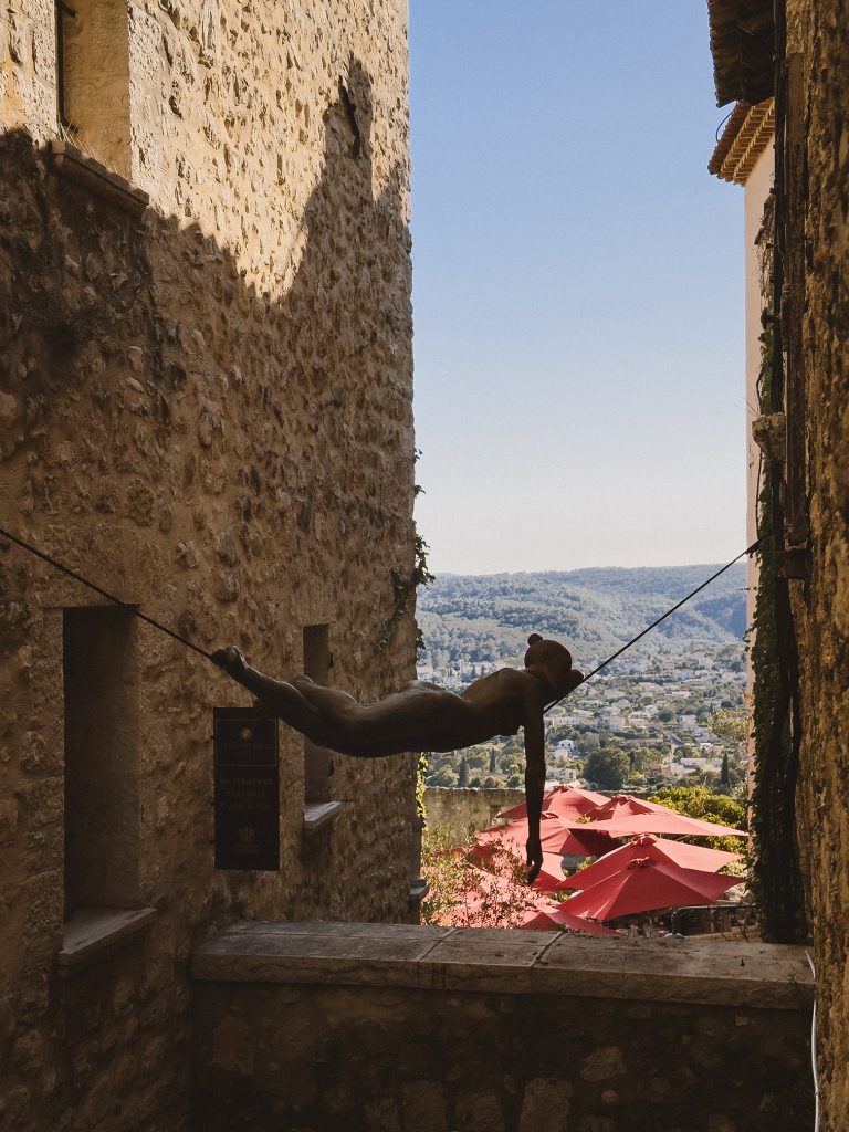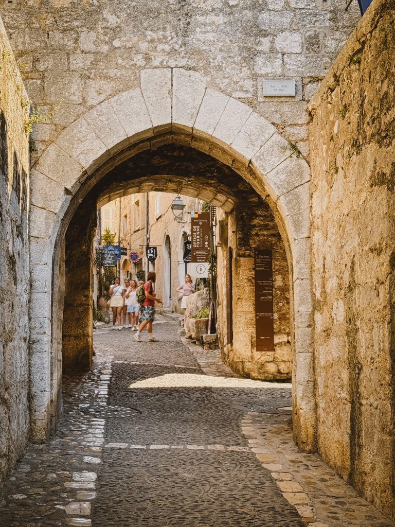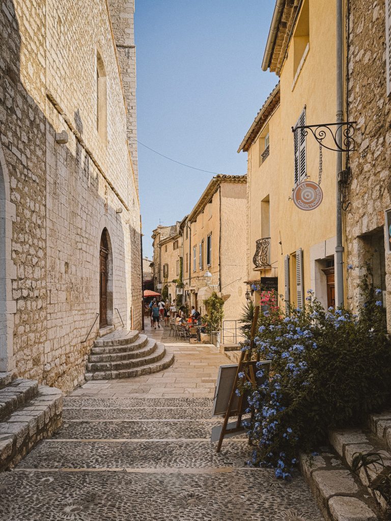 Il mercoledì e il venerdì la piazza si anima di profumi e colori: il mercato dei piccoli produttori diffonde nell’aria l’aroma della lavanda, dei formaggi stagionati e delle marmellate d’albicocca. È il momento giusto per esplorare il borgo, attraversando la Porte de Vence, antico varco medievale che ancora custodisce le sue caratteristiche: feritoie, scanalature di saracinesche e piombatoi.