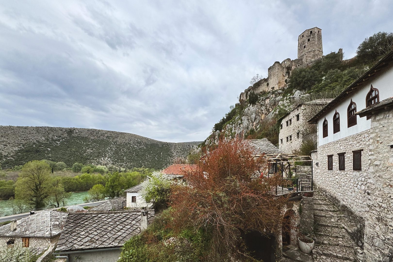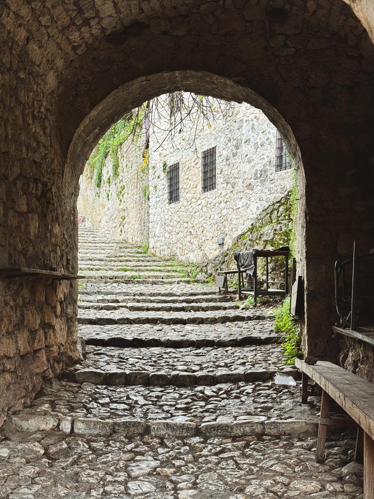 È un villaggio che sembra costruito – sulle rive del fiume Neretva – più per resistere che per accogliere. La pietra è ovunque. Non solo nei muri, ma nell’aria, nei gradini consumati, negli sguardi di chi ancora vive lì. E non c’è bisogno di molte parole: ogni crepa, ogni rovina, ti racconta abbastanza. La storia è stratificata come il fumo in una stanza chiusa: Ungheresi, Ottomani, poi le bombe degli anni ’90. Ognuno ha lasciato qualcosa. Molti hanno portato via tutto il resto.
