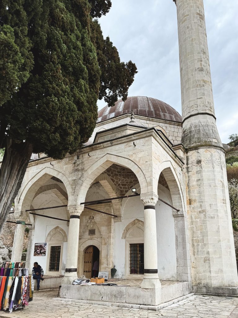 Costruita tra il 1562 e il 1563 per volontà di Hadži Alija, in un’epoca in cui l’Impero Ottomano sapeva ancora far parlare le sue pietre, la moschea si erge con una cupola perfettamente proporzionata sopra una sala centrale semplice ma solenne. Non è ostentazione, è equilibrio. Ed è proprio in quella sobrietà elegante che si legge la potenza dello stile ottomano classico, adattato con sensibilità alla geografia e alla luce dell’Erzegovina.