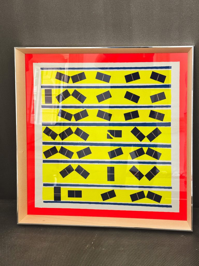 La sostenibilità è una delle tematiche più care all’artista, già esplorata nella precedente mostra “Sostenibilità e Futuro Circolare”, curata da Maria Laura Perilli a Palazzo Valentini. Angelini manipola la materia, trasforma oggetti extrapittorici in elementi simbolici: fili incollati che diventano sigilli di Salomone, frammenti di celle fotovoltaiche che si dispongono su campiture dense di colore, in relazione diretta con l’energia e la luce. Non più elementi funzionali, ma atti di responsabilità. L’arte assume un ruolo sociale.
