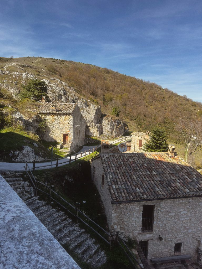 A Elcito circola anche una leggenda. Si racconta che le case del borgo siano costruite in pietra corniola, un calcare locale capace di assorbire il calore del sole durante il giorno per restituirlo lentamente durante la notte, mitigando le rigide temperature invernali a queste altitudini. Realtà o suggestione, contribuisce a rafforzare l’idea di un luogo in cui ogni elemento, naturale o costruito, prende parte a un gioco di forze antiche.